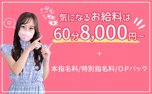 このままでいいのかな?なにか変えないと、変わらないといけないのに…失敗したら、騙されたら、空回りしたら、どうしよう。…そうやって毎日を過ごしていませんか?当店はお客様に「心と体」の充電をしていただく、風俗エステ店です。キス、フェラ、お触り、全裸といった、ハードなサービスはオプションも含めて一切ありません。お給料は誰でも60分8,000円〜、頑張りで最大15,000円まで上がります。エステ未経験の方でも、実際のお仕事に活かせるスキルが身につくよう、しっかりと講習を行っております。私たちだけでなく、あなたと一緒に明日を作りたい。「一緒に」踏み出せるよう、私たちにお手伝いさせてください。